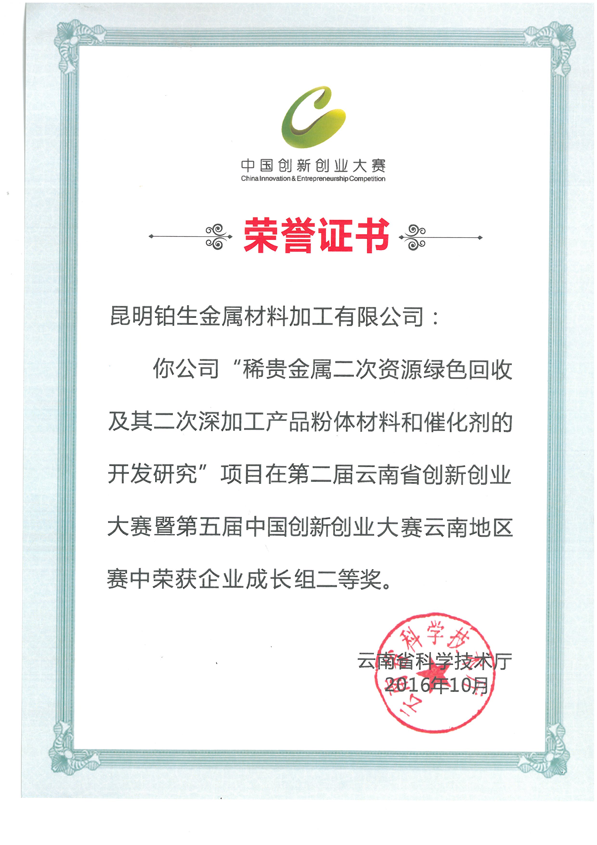 2016-鉑生-雙創(chuàng)大賽證書